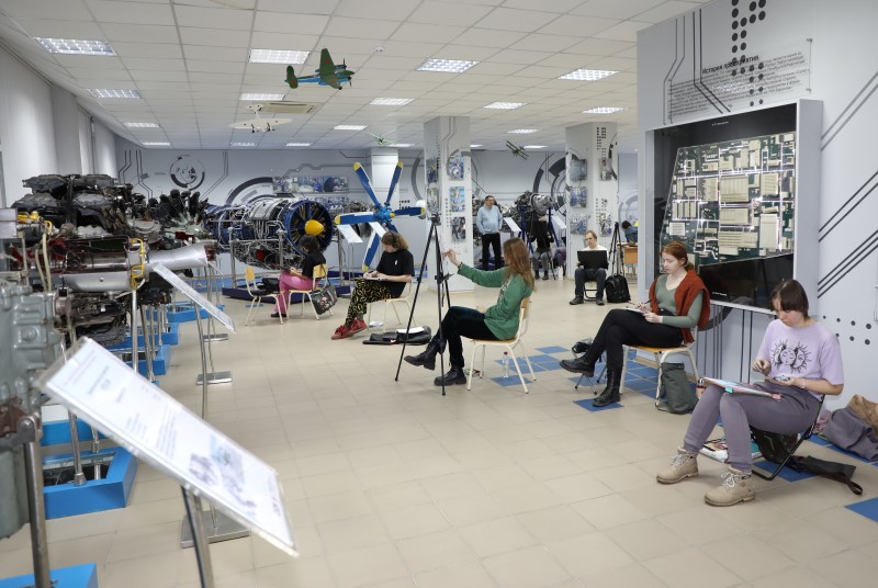 Музей филиала на один день превратился в импровизированную художественную мастерскую: молодые люди с мольбертами, альбомами, карандашами, красками увлеченно рисовали авиационные двигатели. Объект изображения, технику исполнения каждый участник группы выбирал самостоятельно. Дать возможность желающим увидеть красоту в непривычном и творчески ее осмыслить – в этом и заключается смысл проекта «Индустриальные пленэры», к которому в качестве принимающей стороны приобщился филиал.