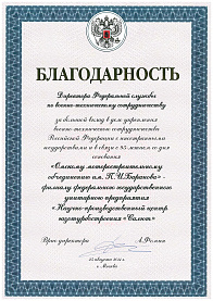 В августе 2011 года предприятию вручена благодарность директора Федеральной службы по военно-техническому сотрудничеству за большой вклад в укрепление военно-технического сотрудничества России с иностранными государствами.